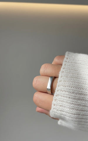 Nuestro Anillo de Sello Clásico es la definición de la elegancia sólida y moderna. Esta sortija destaca por su diseño robusto y geométrico, con una superficie plana y pulida perfecta para un estilo audaz y statement.