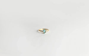 Descubre nuestro Anillo Marquesa "Ojo de Agua", una pieza que combina la simplicidad elegante de un anillo solitario con el cautivador color de una gema central. Este diseño destaca por su piedra en talla marquesa (o navette) de tono vibrante (turquesa/aguamarina), que alarga visualmente el dedo.