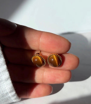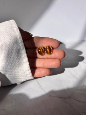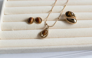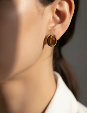 Eleva tu estilo con la energía y el magnetismo de nuestros pendientes de Ojo de Tigre. Estas piezas combinan un diseño clásico de cabujón con la resistencia superior del acero inoxidable 316L, creando un accesorio atemporal, duradero e hipoalergénico.