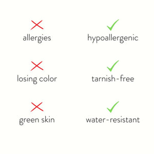 Fabricada en acero inoxidable impermeable, nunca más tendrás que preocuparte por joyas descoloridas o empañadas.